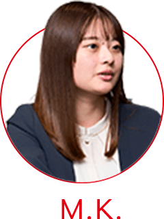 私もN.M.さんとほとんど同じです(笑)。覚えることは多いのですが、先輩方が丁寧に教えてくださるので、ありがたいですね。また入社前に想像していたよりも、働きやすいです。勤務時間を自主的に選択できるフレックスタイム制度や、在宅勤務制度があるので、柔軟に働けますし、また面倒見の良い先輩方ばかりなので、たくさん学ぶことができる環境です。M.K.さんはどうですか?